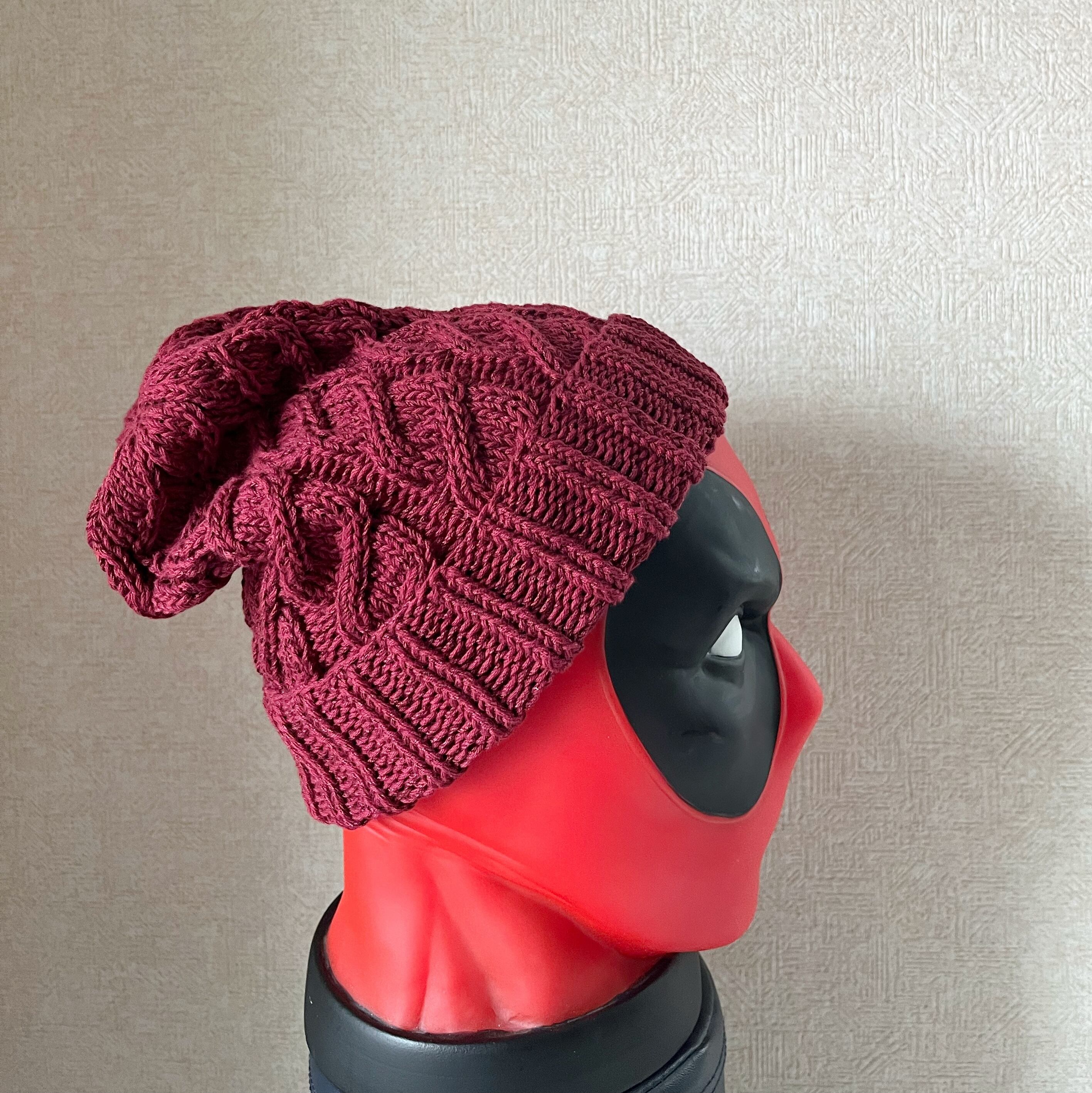 コットンヤーンとシルクヤーンを引き揃えて編んだニット帽です