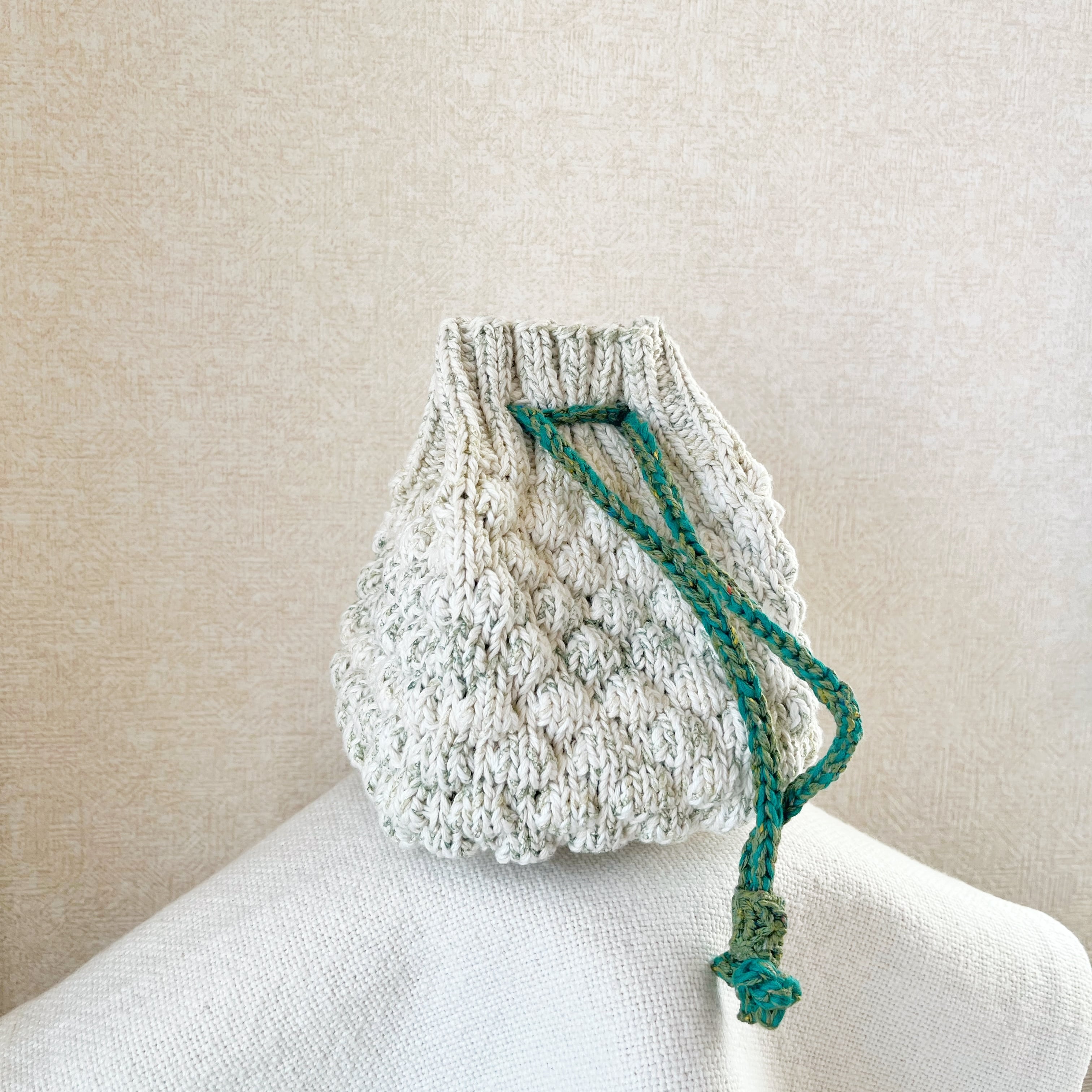 バッグ本体は、引き上げ編みで立体感のある模様を作りました