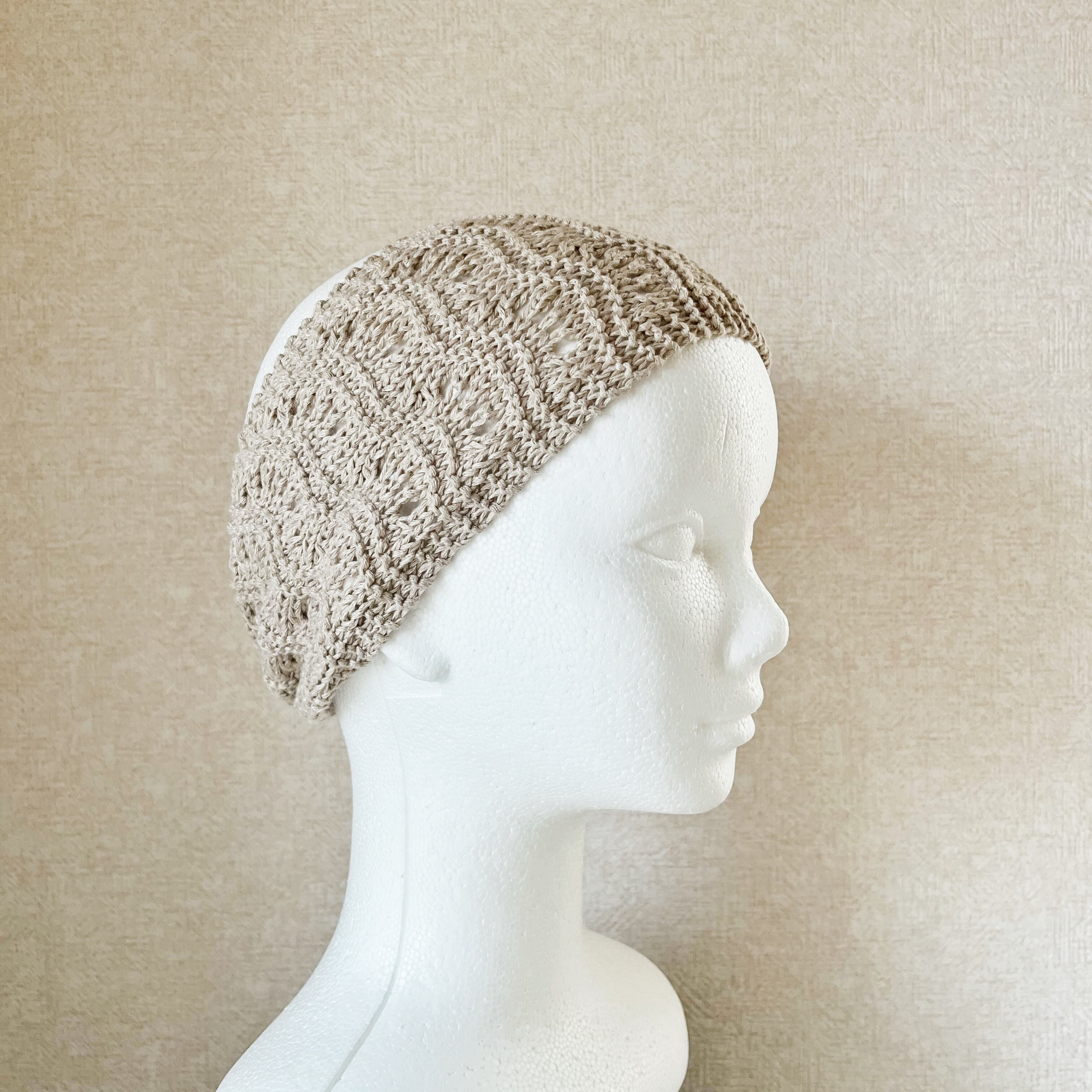 ニットが伸縮して頭になじみ、優しい使い心地となっております