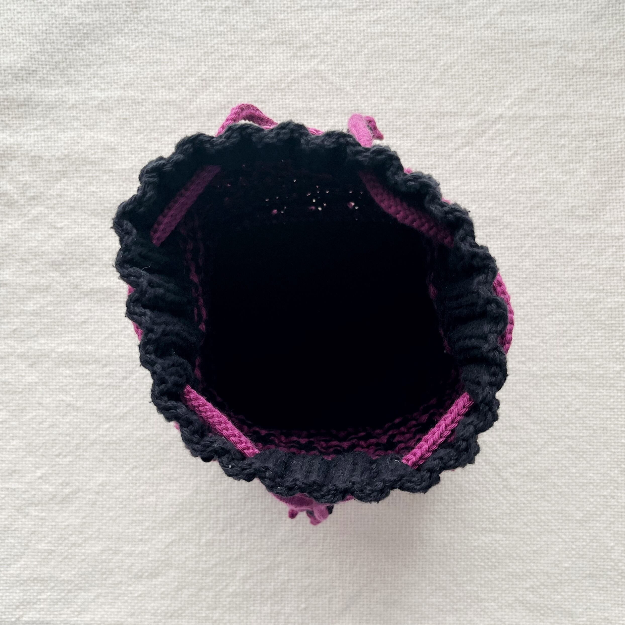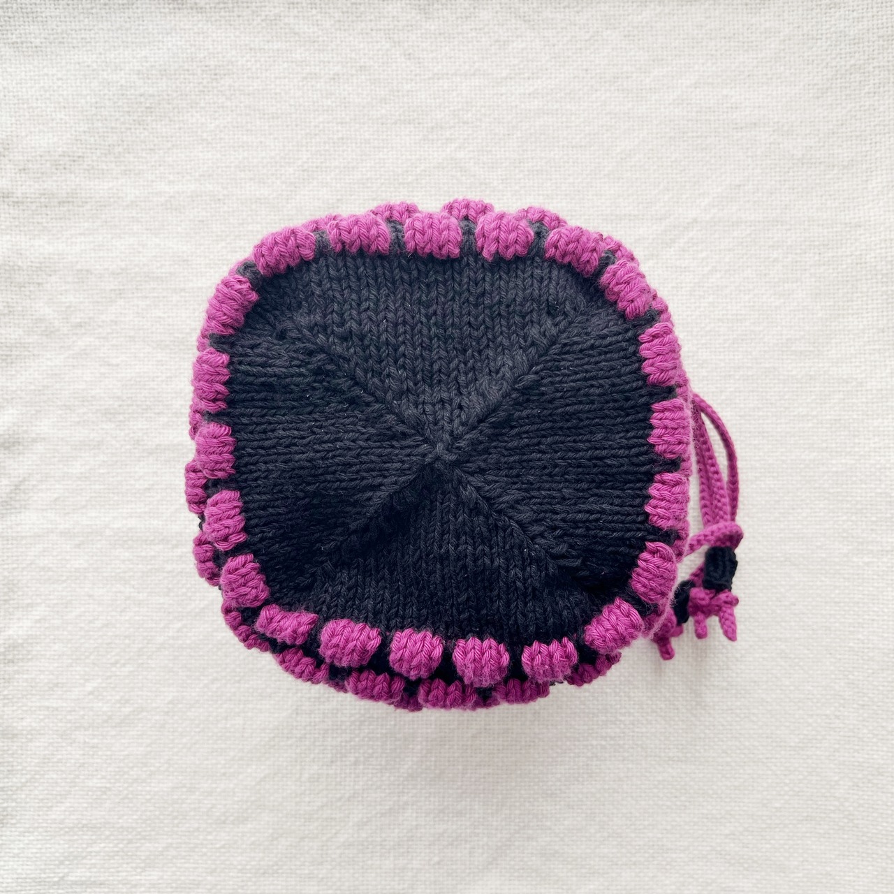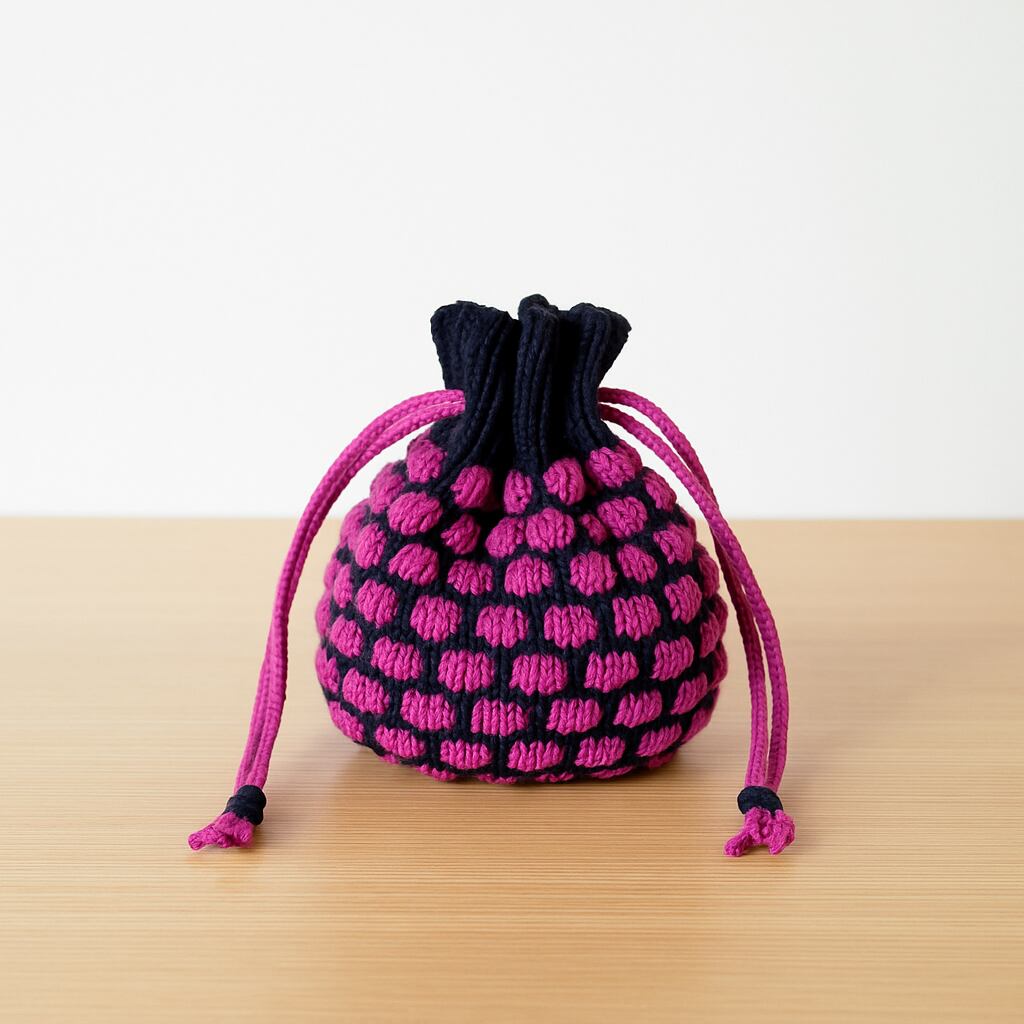 バッグ本体は、引き上げ編みで立体感のある水玉模様(ドット柄)を作りました